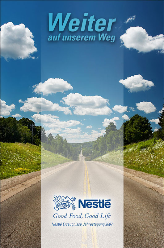 Gestaltung eines Erscheinungsbildes für die Nestlé Erzeugnisse Jahrestagung 2007. Erstellt wurde eine Logo-Grafik mit Anwendung auf Banner, Fahnen und Schilder; zudem wurden sämtliche Druckerzeugnisse (Speisekarten, Charts, Handouts) mit in die Gestaltung einbezogen.